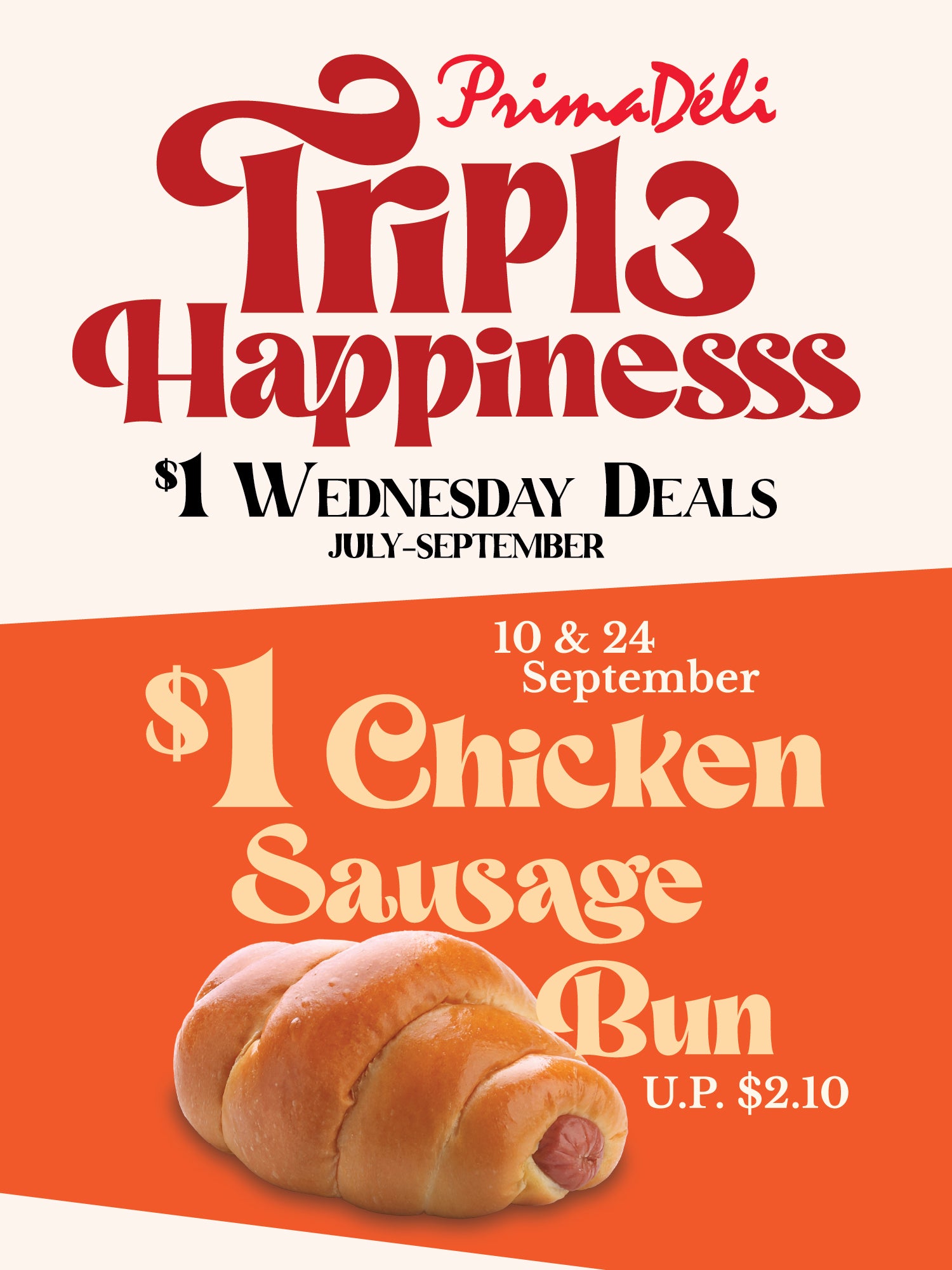 Our pre-birthday countdown wraps up with a delicious deal on selected Wednesdays, 𝟏𝟎 & 𝟐𝟒 𝐒𝐞𝐩𝐭𝐞𝐦𝐛𝐞𝐫: enjoy our freshly baked 𝐂𝐡𝐢𝐜𝐤𝐞𝐧 𝐒𝐚𝐮𝐬𝐚𝐠𝐞 𝐁𝐮𝐧 for only $𝟏*!